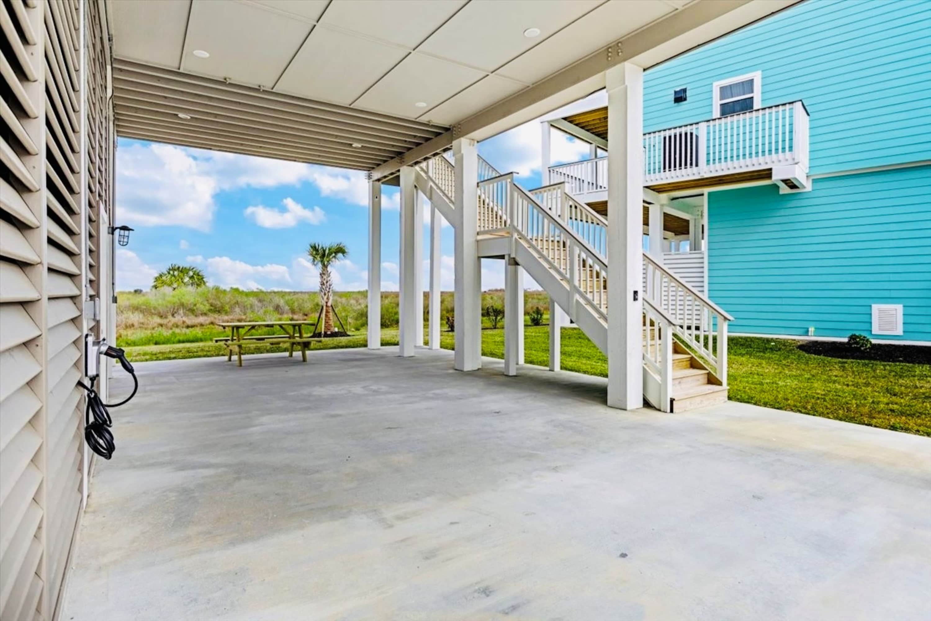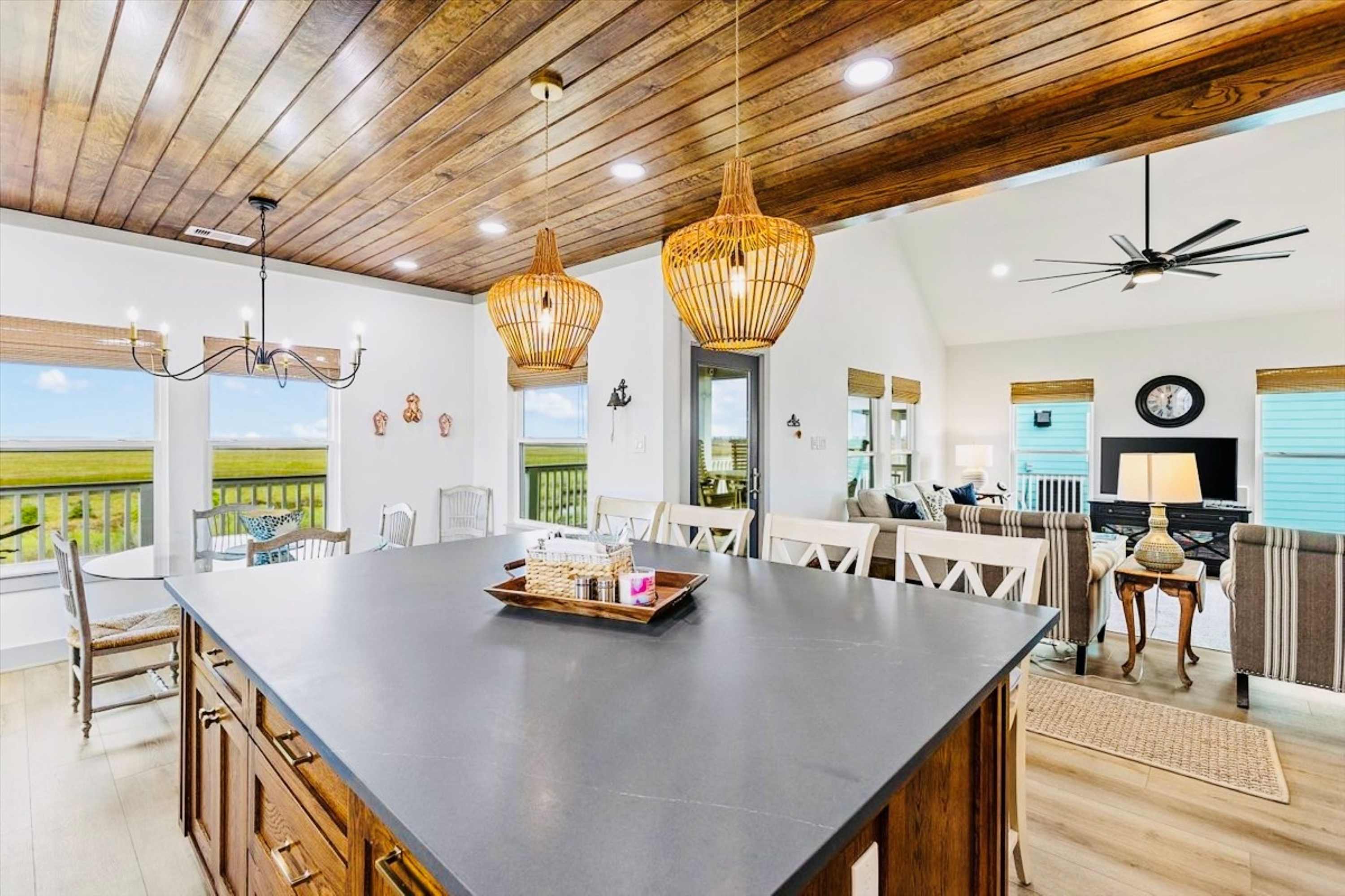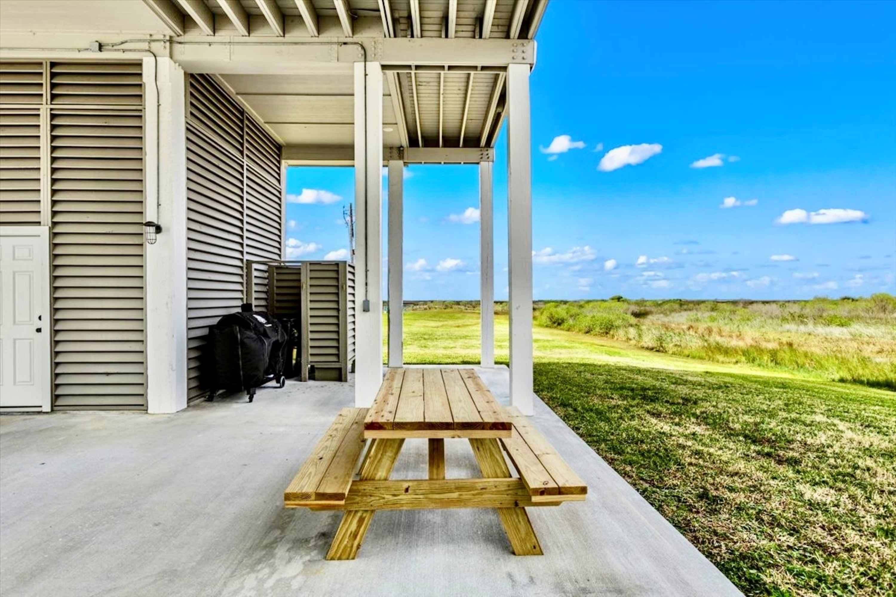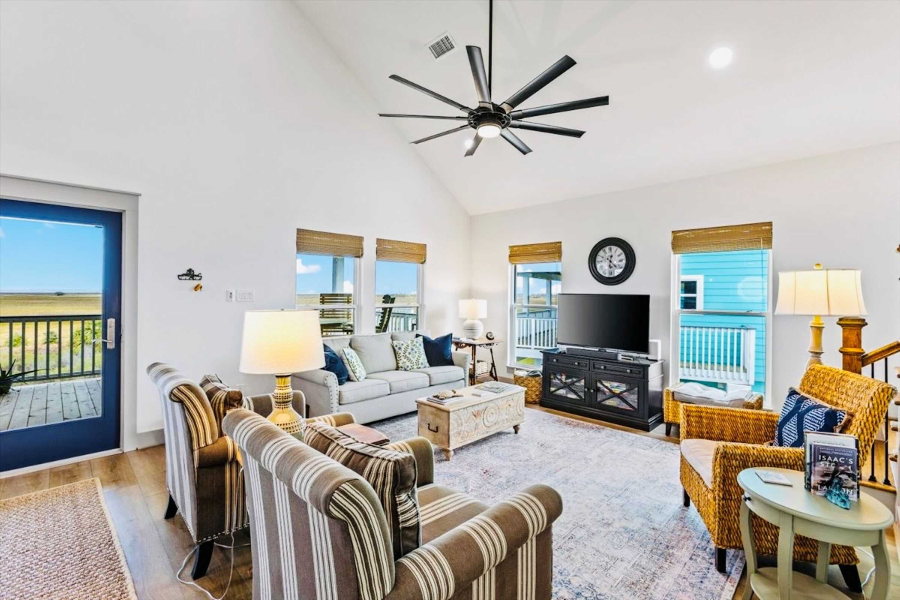 Step outside to enjoy outdoor seating where you can soak in the coastal breeze, or retreat to the private deck accessed through one of the bedrooms for elevated views and quiet moments above the natural scenery. Whether you're sipping morning coffee while watching birds over the bay or winding down after a beach day, Spoonbill @ West Bay delivers a relaxed, scenic escape designed for slowing down and enjoying the beauty of Galveston’s west end.