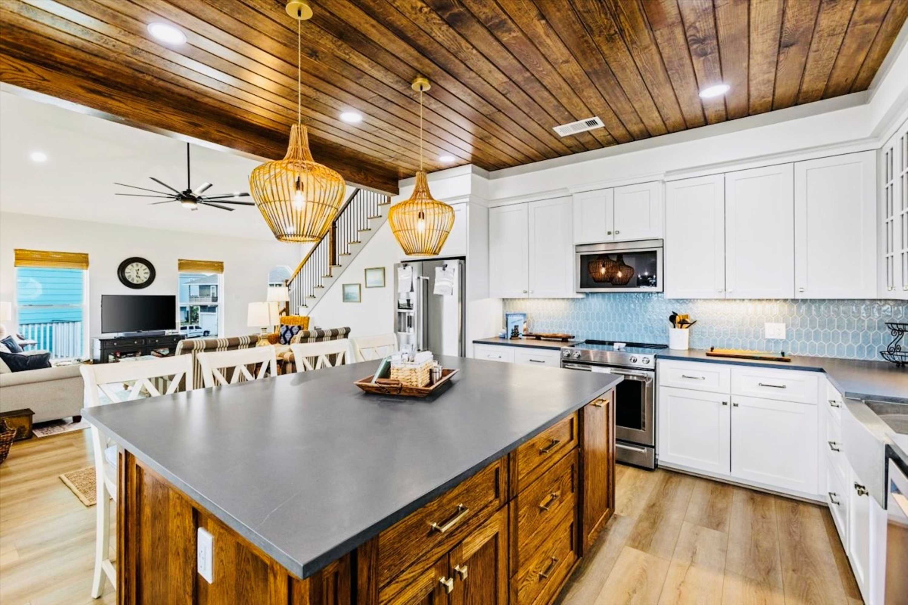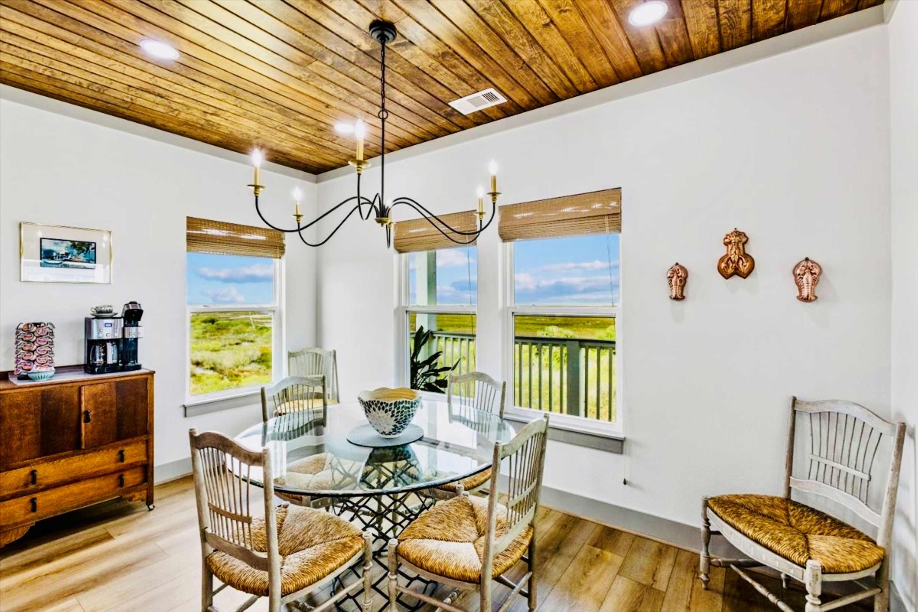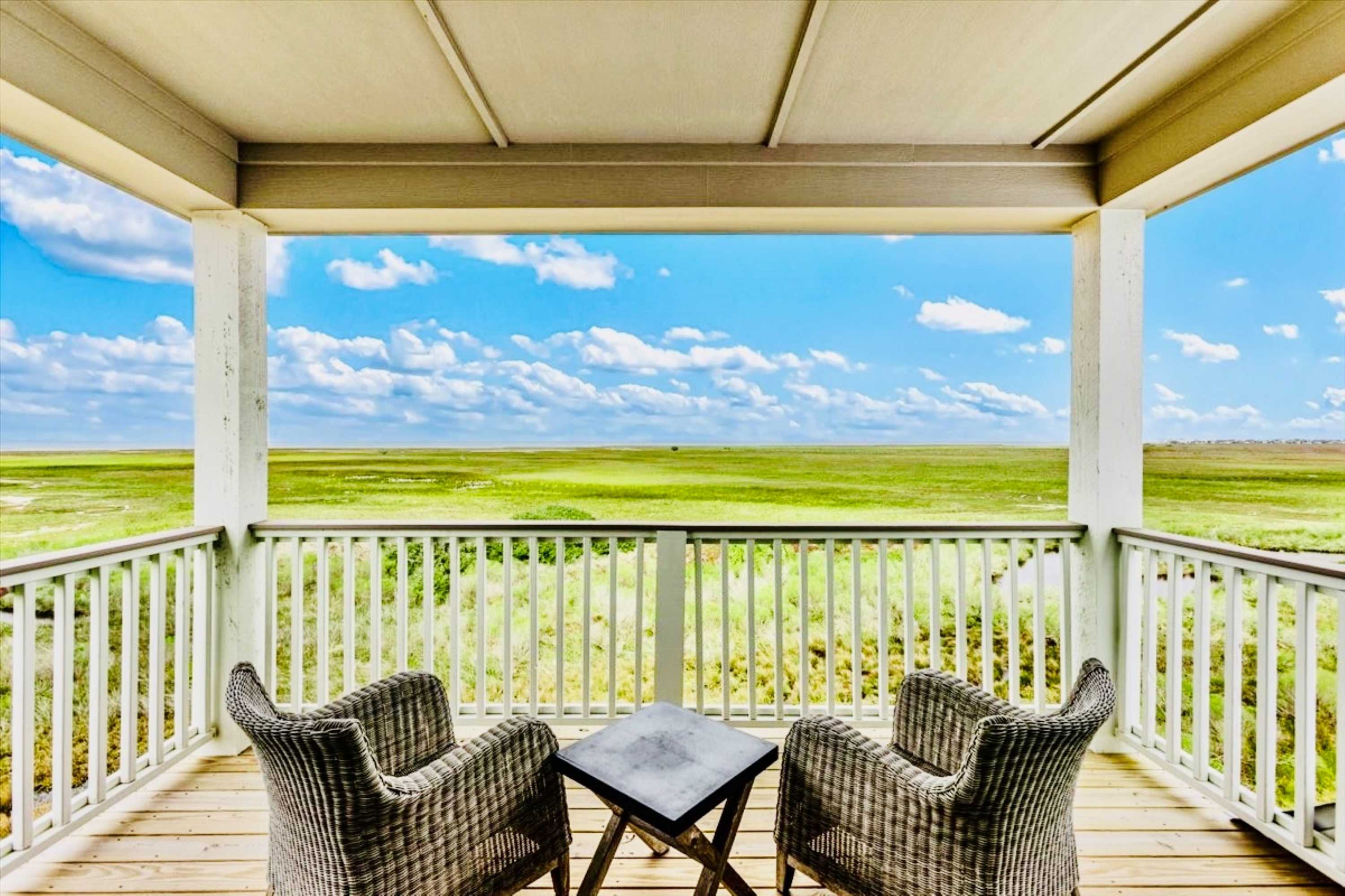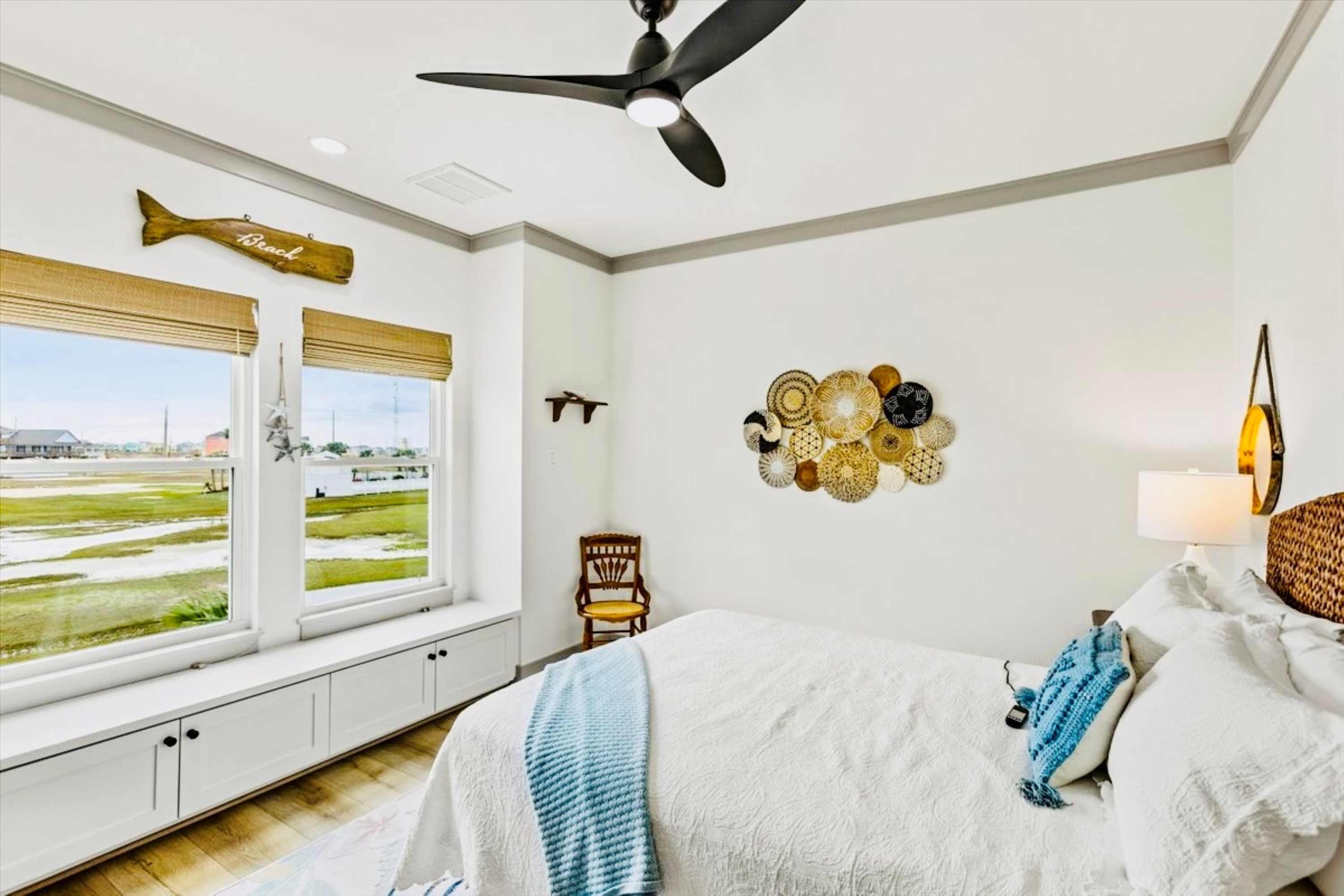 Step outside to enjoy outdoor seating where you can soak in the coastal breeze, or retreat to the private deck accessed through one of the bedrooms for elevated views and quiet moments above the natural scenery. Whether you're sipping morning coffee while watching birds over the bay or winding down after a beach day, Spoonbill @ West Bay delivers a relaxed, scenic escape designed for slowing down and enjoying the beauty of Galveston’s west end.