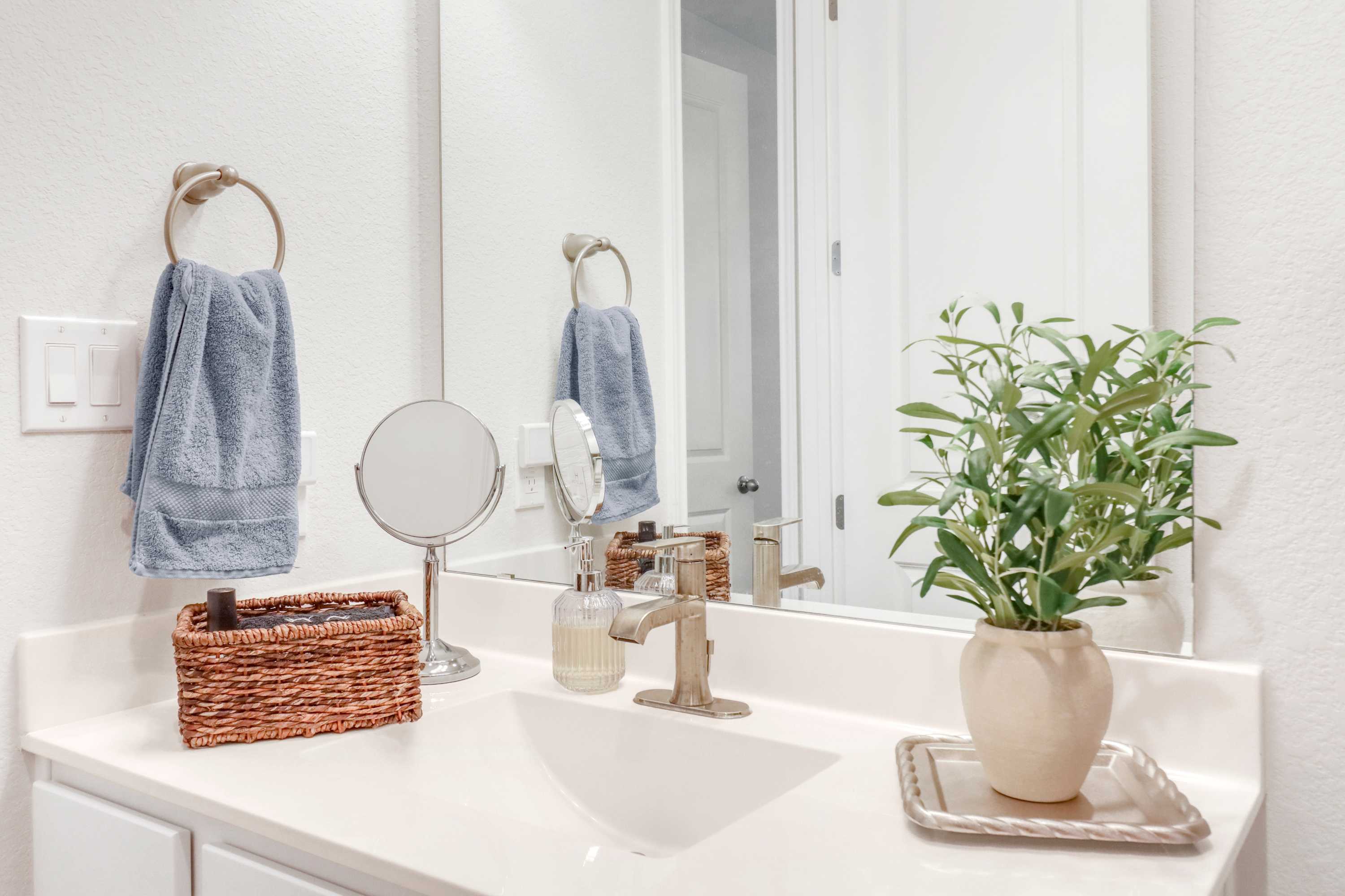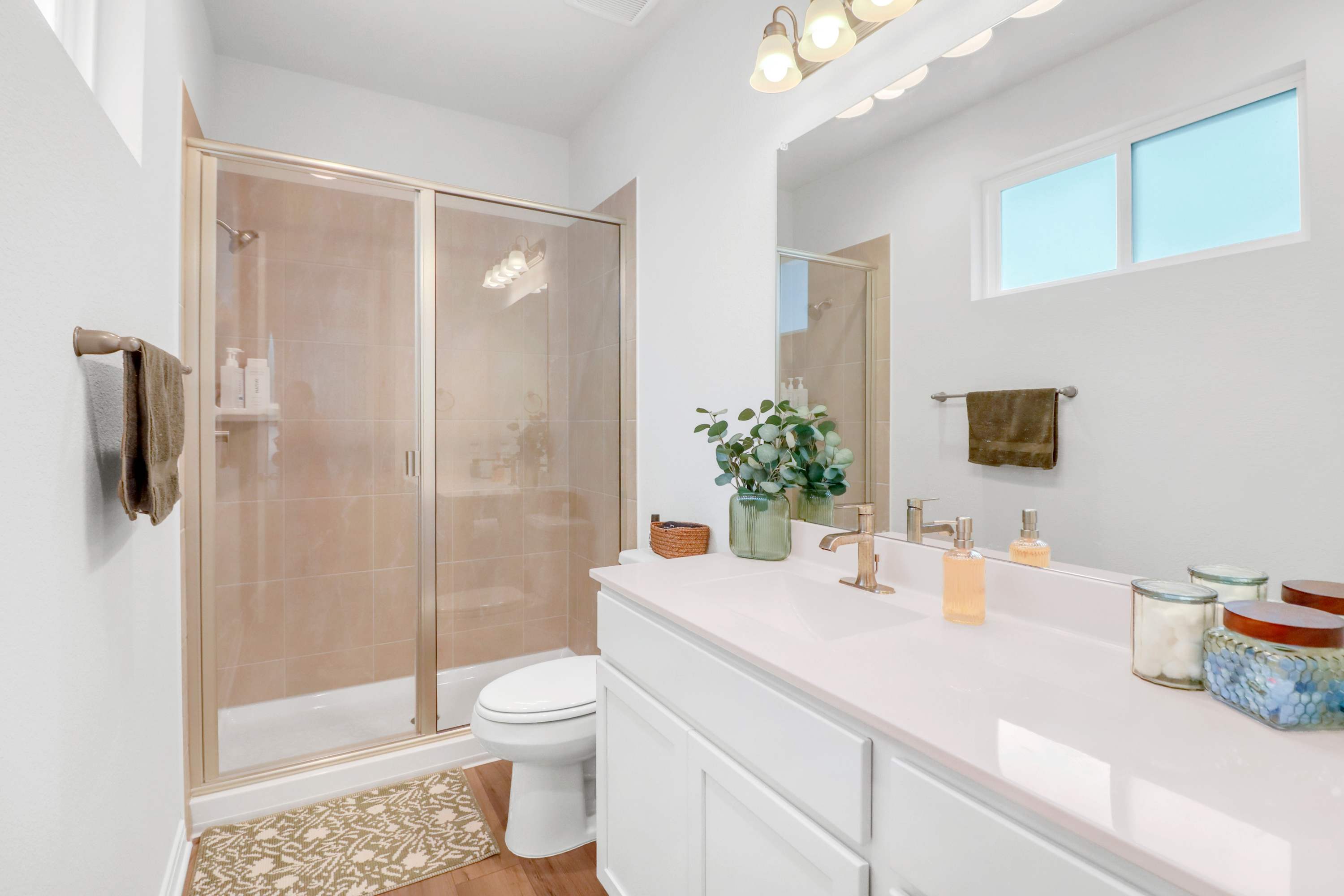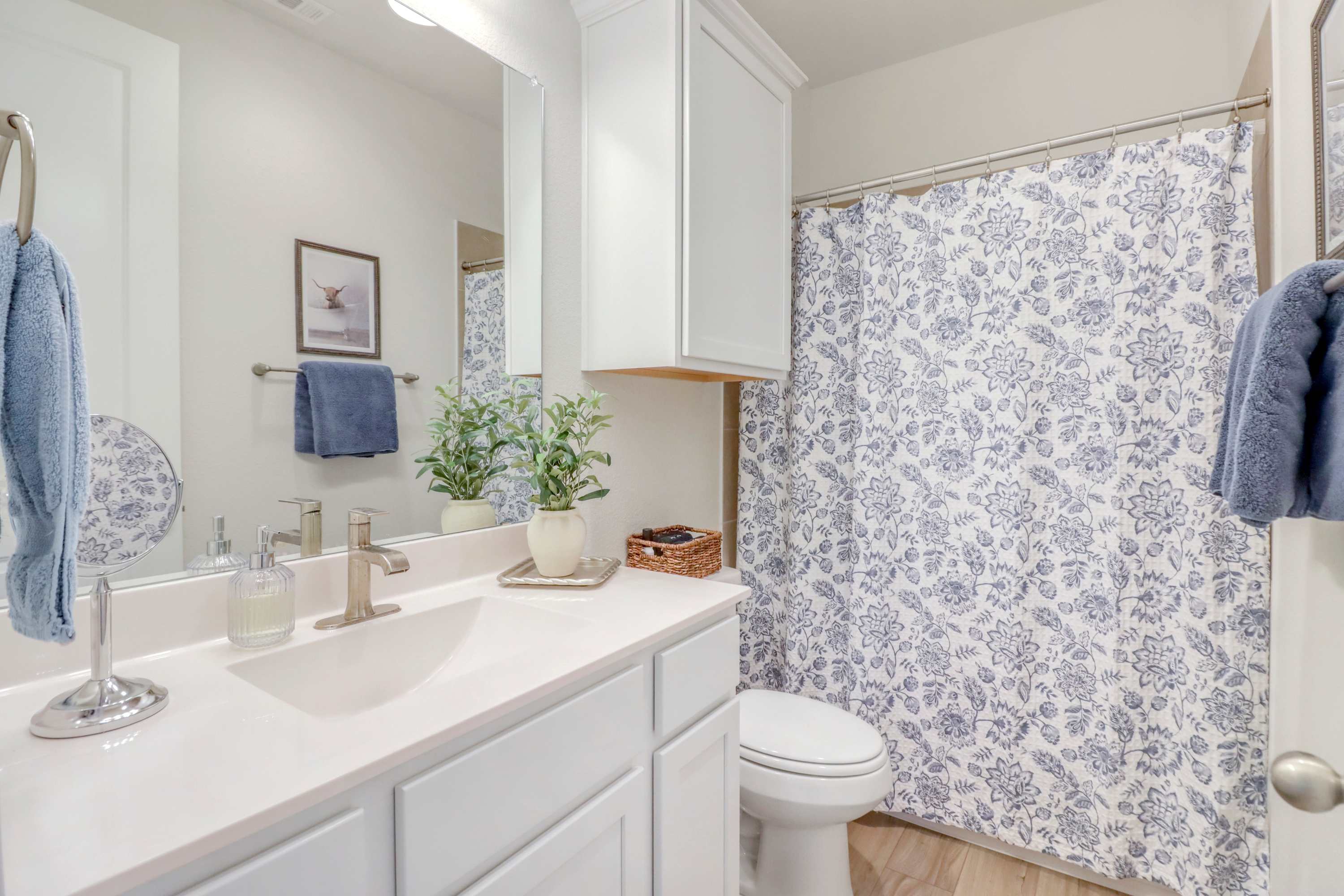 This home also includes an additional full guest bathroom with a single vanity and a shower/tub combo.